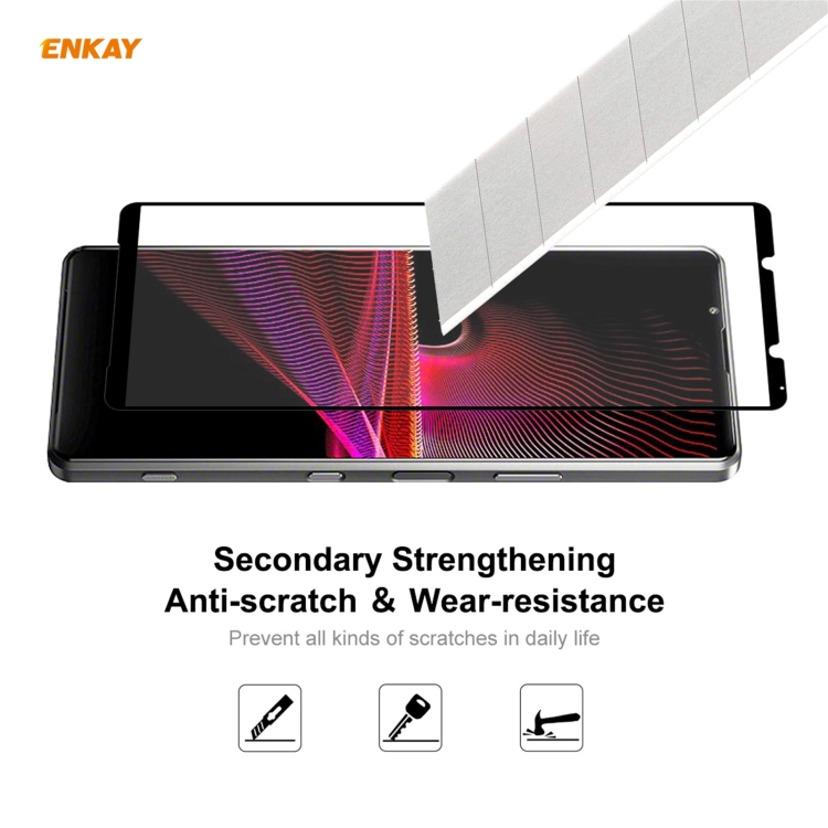 Vidrio Templado para Sony Xperia 1 III Enkay Hat-Prince Glue Full 0.26mm 9H 2.5D Cobertura Completa