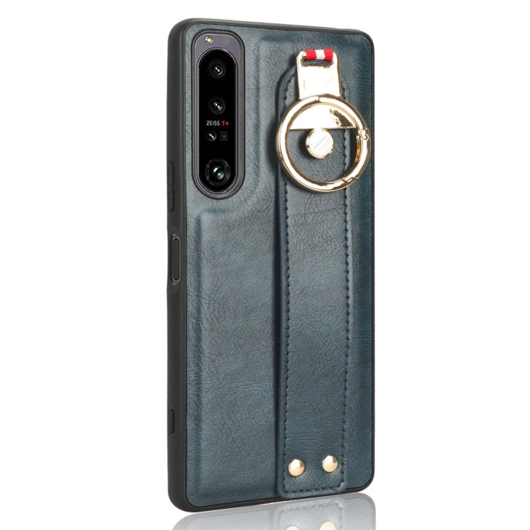 Funda Trasera de Cuero con Muñequera para Sony Xperia 1 III (Azul)