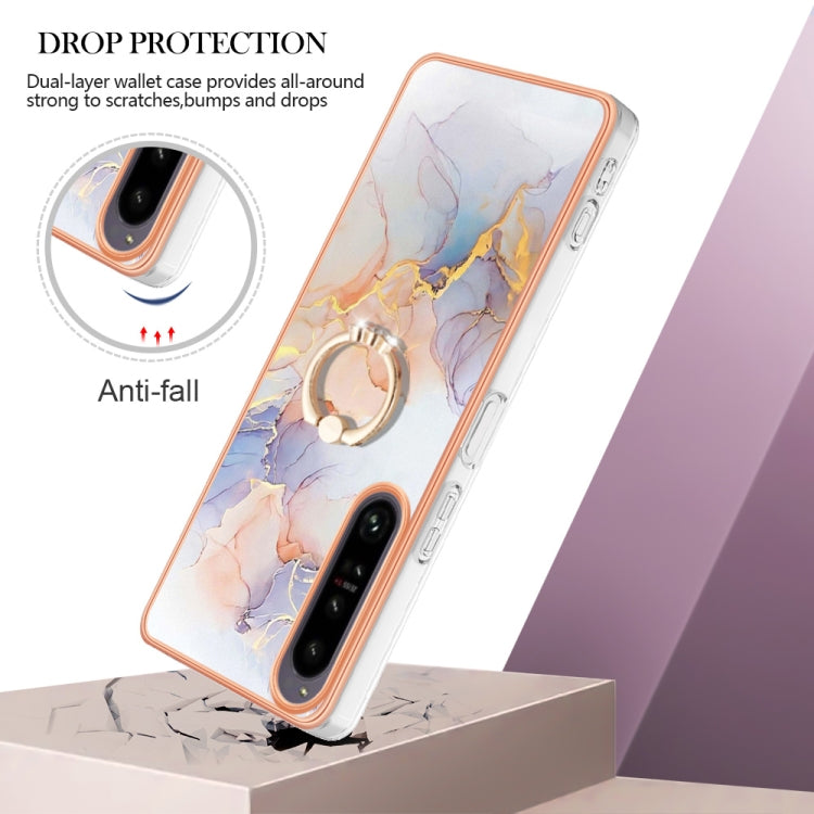 Funda TPU con Anillo para Sony Xperia 1 IV Galvanoplastia IMD (Mármol Blanco)