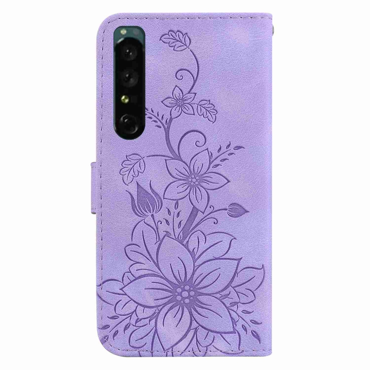 Funda de Cuero En Relieve para Sony Xperia 1 IV Lily para Teléfono (Púrpura)