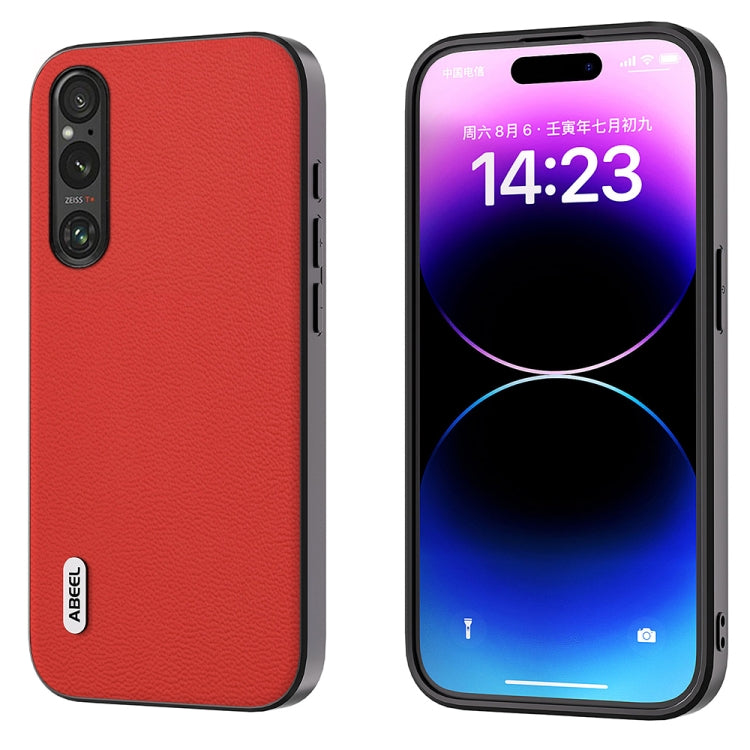 Funda de teléfono Sony Xperia 1 V Abeel Serie Luolai Cuero Genuino (Rojo)