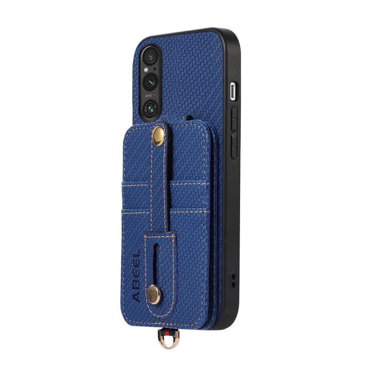 Funda para Sony Xperia 1 V Abeel con Tarjetero RFID de Fibra de Carbono (Azul)