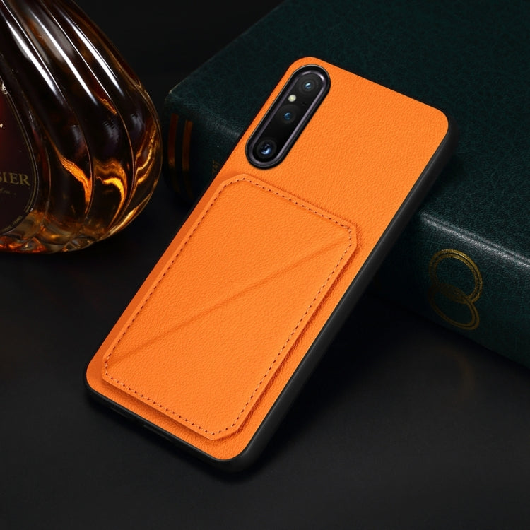 Funda para Sony Xperia 1 V D04 con Ranura para Tarjeta Dual y Textura de Becerro (Naranja)