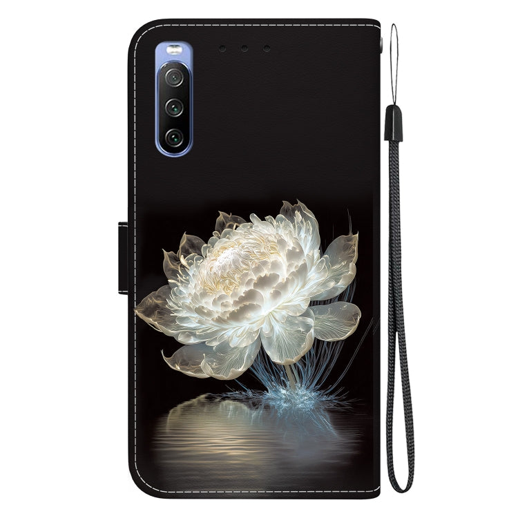 Estuche para Sony Xperia 10 III de Cuero con Dibujo Coloreado y Textura de Cristal (Peonía de Cristal)