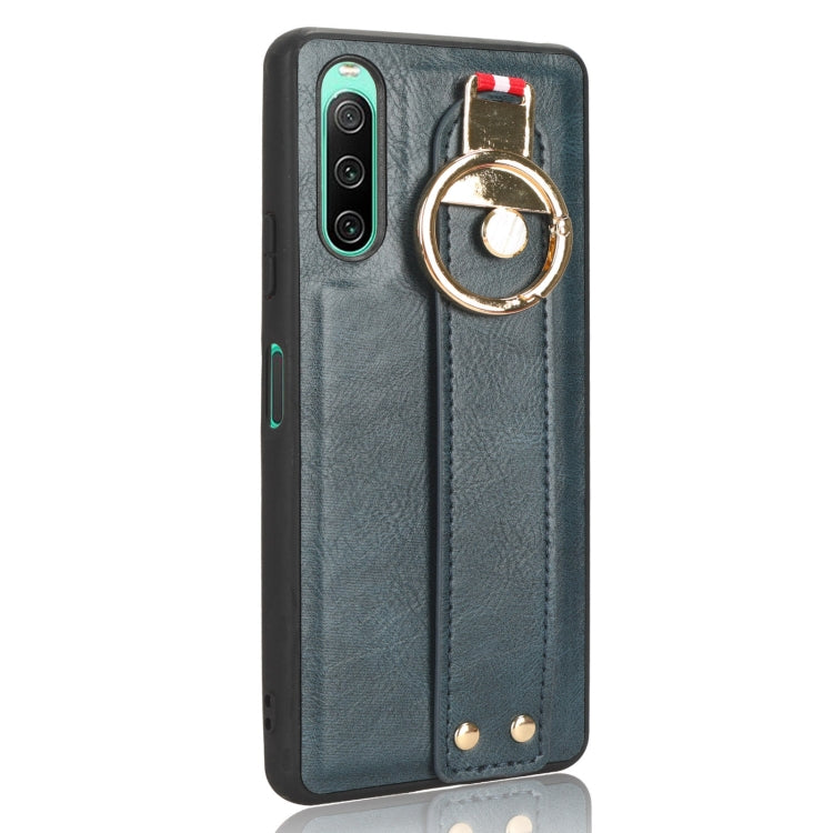 Funda Trasera de Cuero con Muñequera para Sony Xperia 10 III (Azul)
