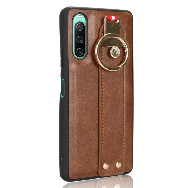 Funda Trasera de Cuero para Sony Xperia 10 III con Muñequera (Marrón)