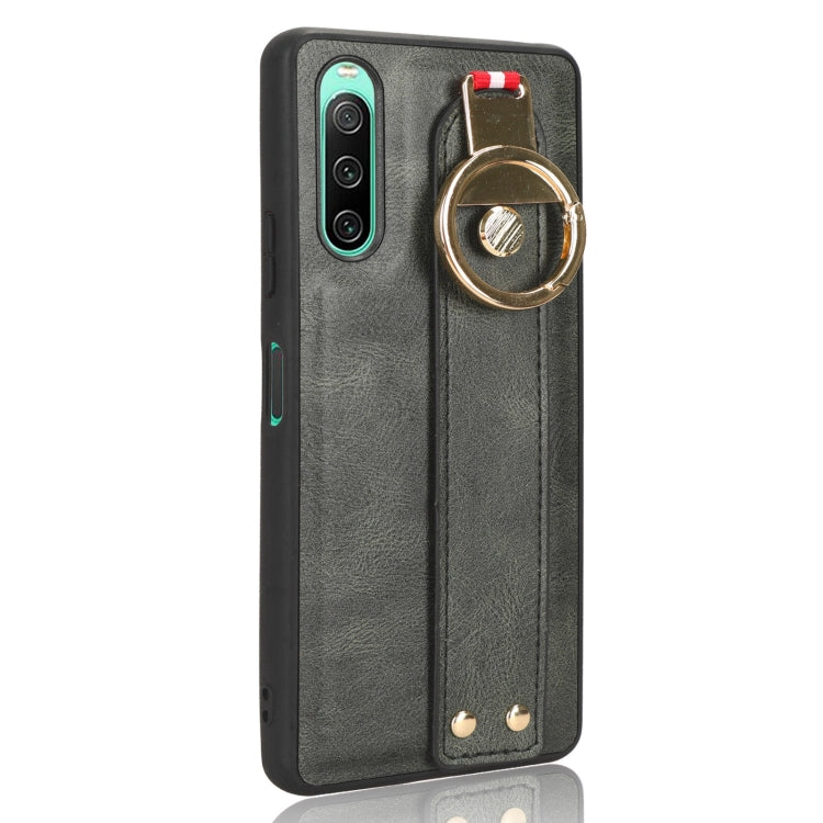 Funda Trasera de Cuero para Sony Xperia 10 III con Muñequera (Verde)