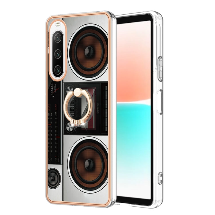Funda para Sony Xperia 10 IV IMD Doble Cara Galvanizada con Soporte para Anillo (Radio Retro)