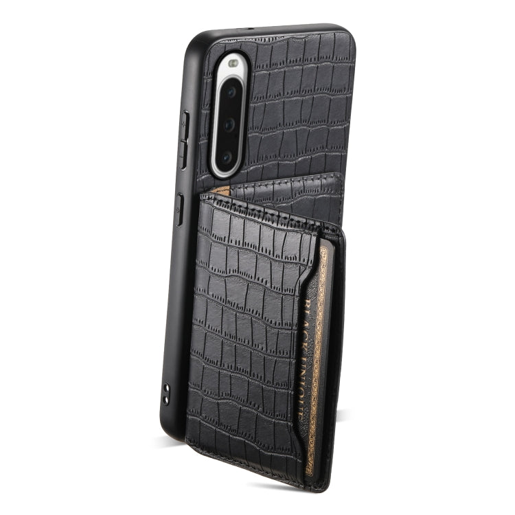 Funda para Sony Xperia 10 V con Diseño de Bolsa para Tarjetas y Textura de Cocodrilo (Negro)