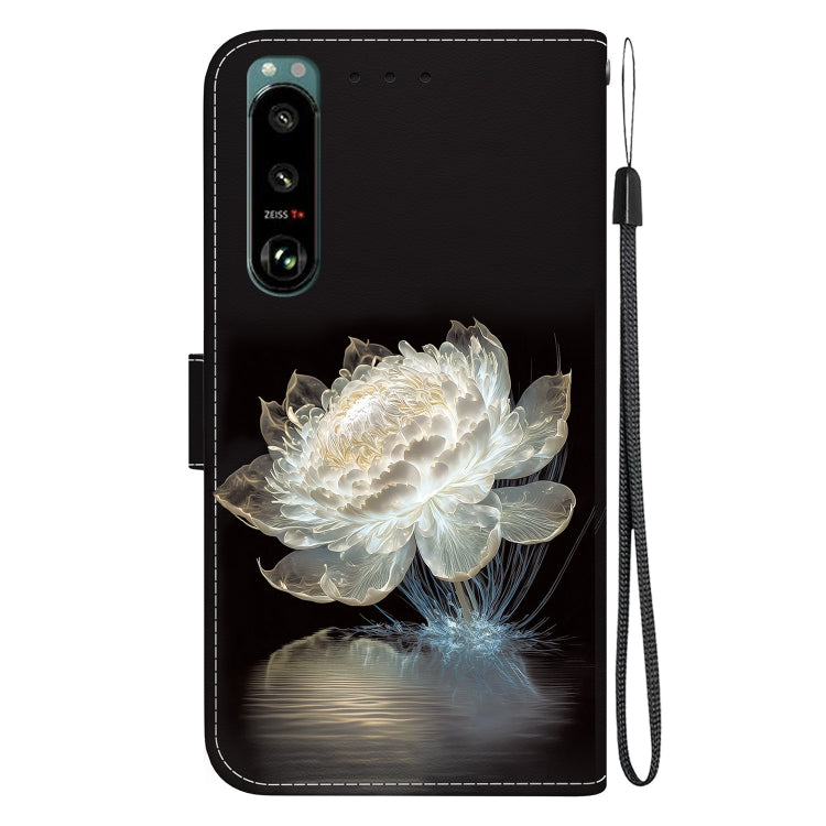 Estuche para Sony Xperia 5 III de Cuero con Dibujo Coloreado y Textura de Cristal (Peonía de Cristal)
