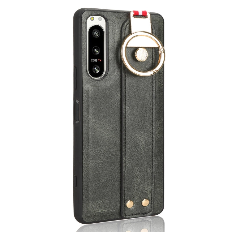 Funda Trasera de Cuero para Sony Xperia 5 III con Muñequera (Verde)
