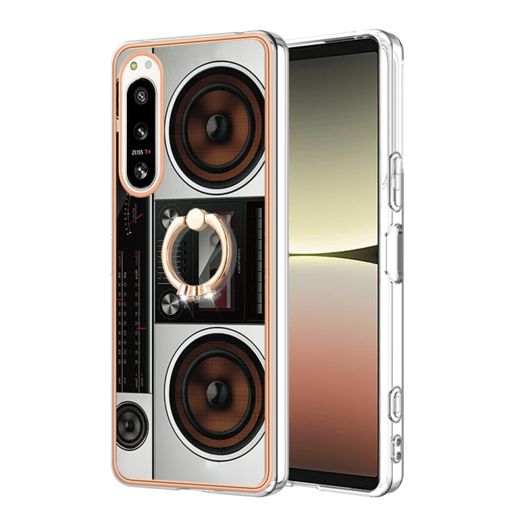 Funda para Sony Xperia 5 IV IMD Doble Cara Galvanizada con Soporte para Anillo (Radio Retro)