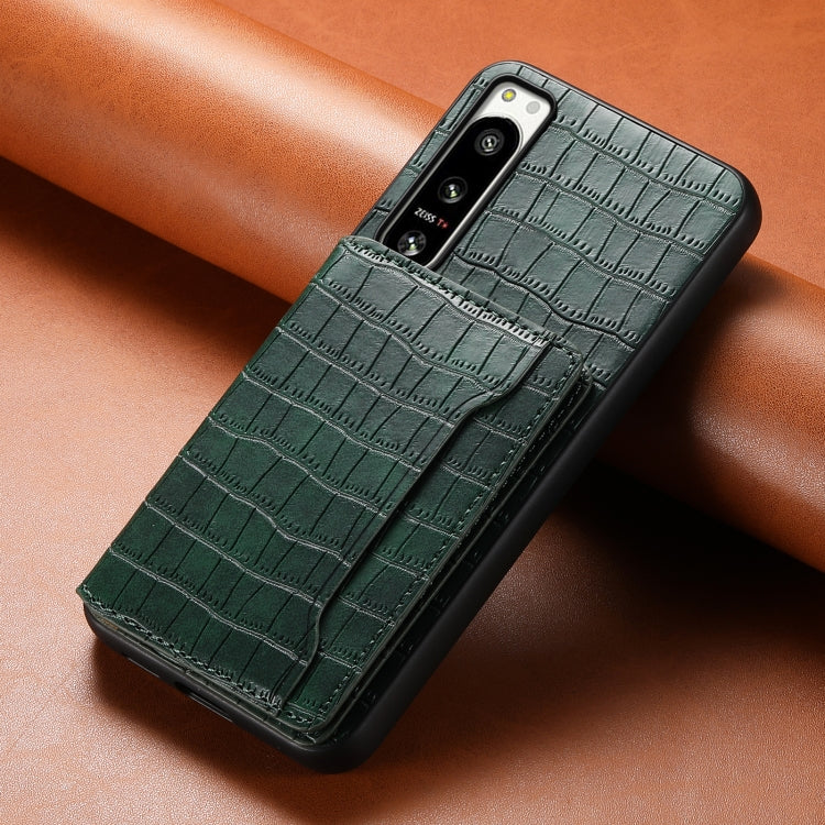 Funda para Sony Xperia 5 IV con Bolsa para Tarjetas y Textura de Cocodrilo (Verde)