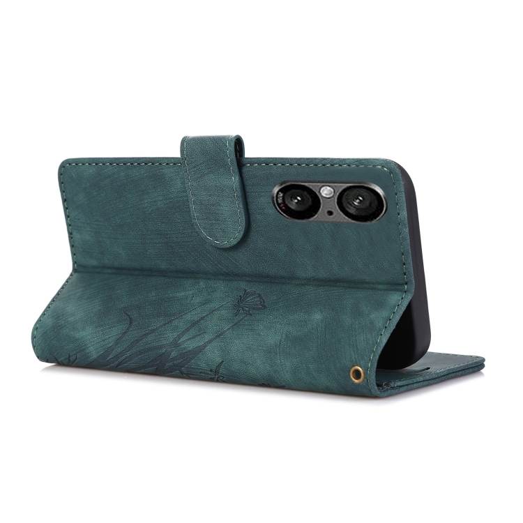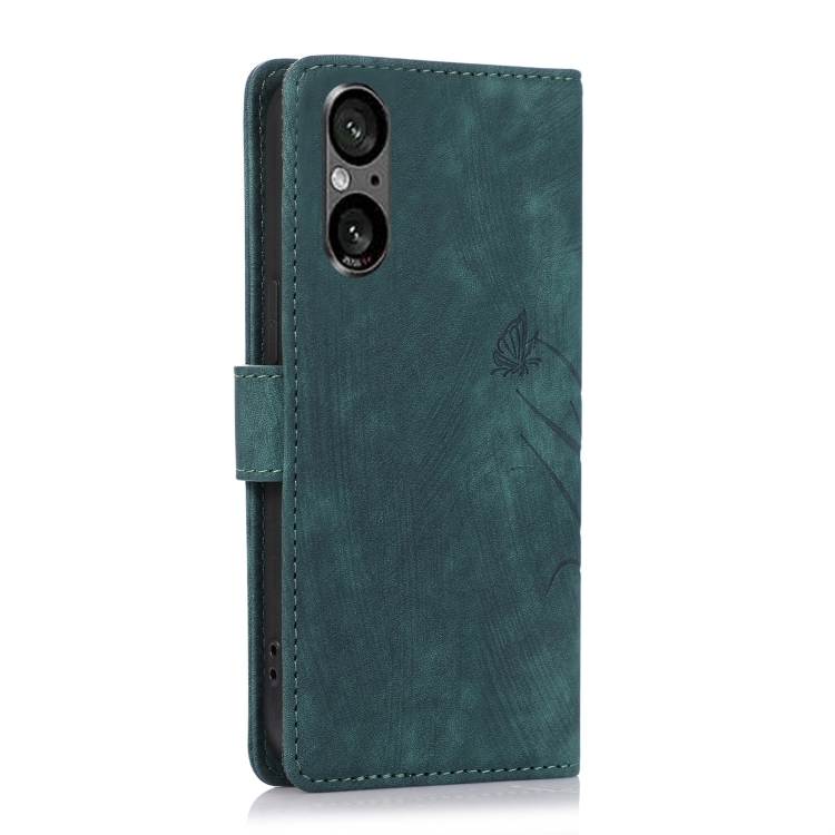 Funda de Cuero para Sony Xperia 5 V 5G con Relieve de Mariposa Orquídea (Verde)