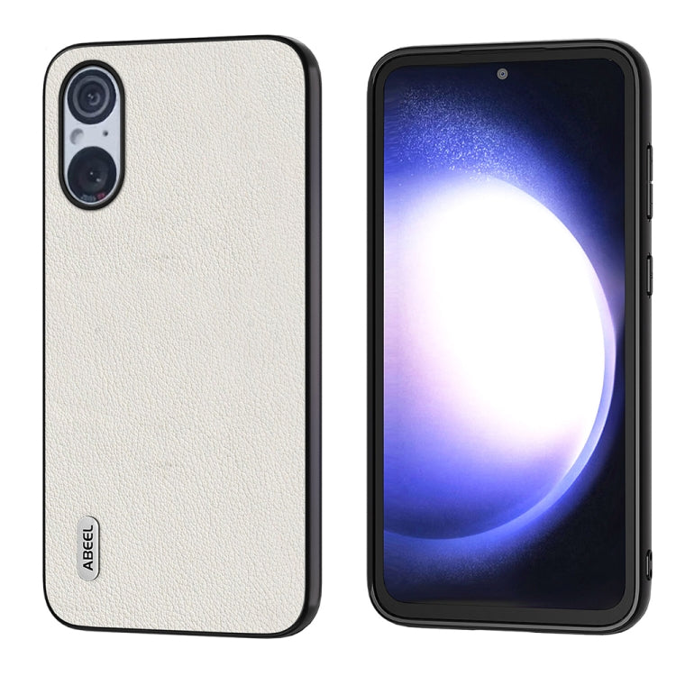 Funda para Sony Xperia 5 V Abeel con Borde Negro Ondulado de Cuero Genuino (Gris)