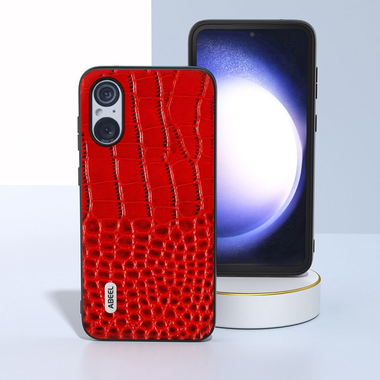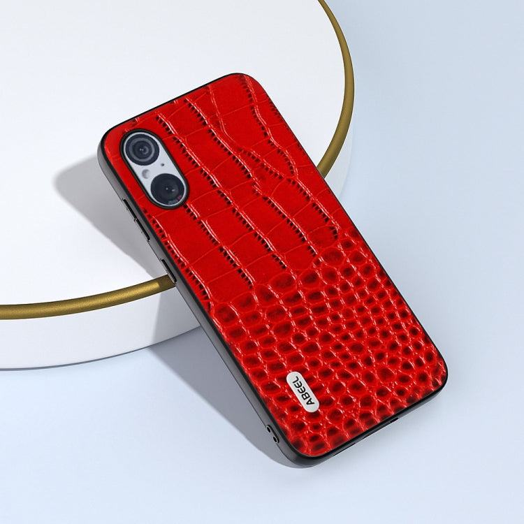 Funda para Sony Xperia 5 V Abeel Cuero Genuino con Borde Negro y Patrón Cocodrilo (Rojo)