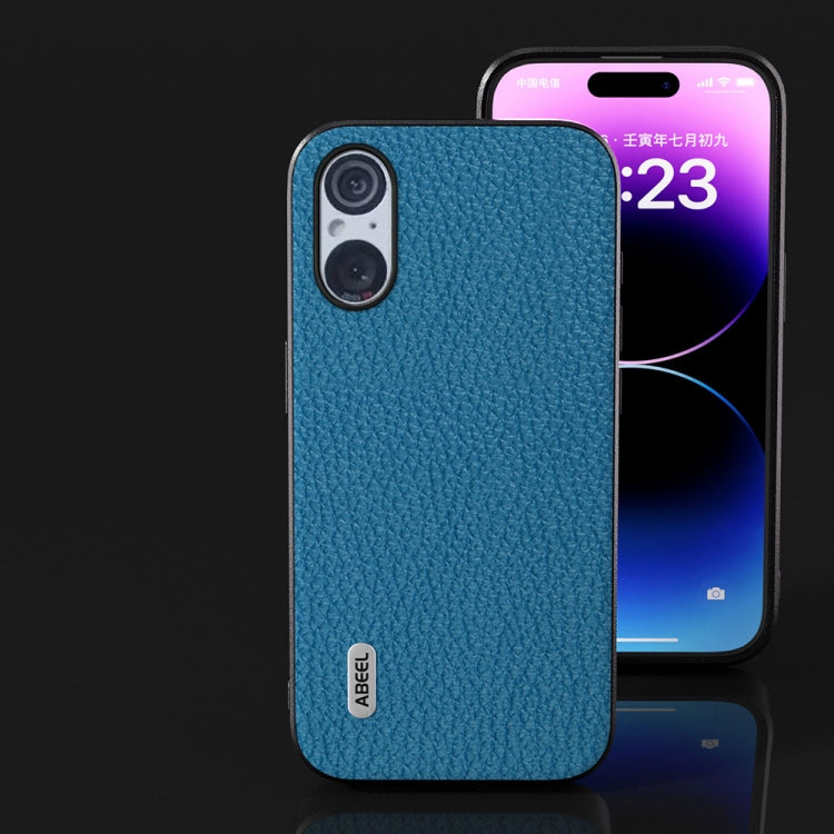 Funda para Sony Xperia 5 V Abeel Cuero Genuino Textura Litchi (Azul)