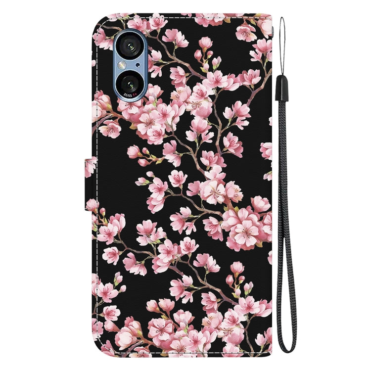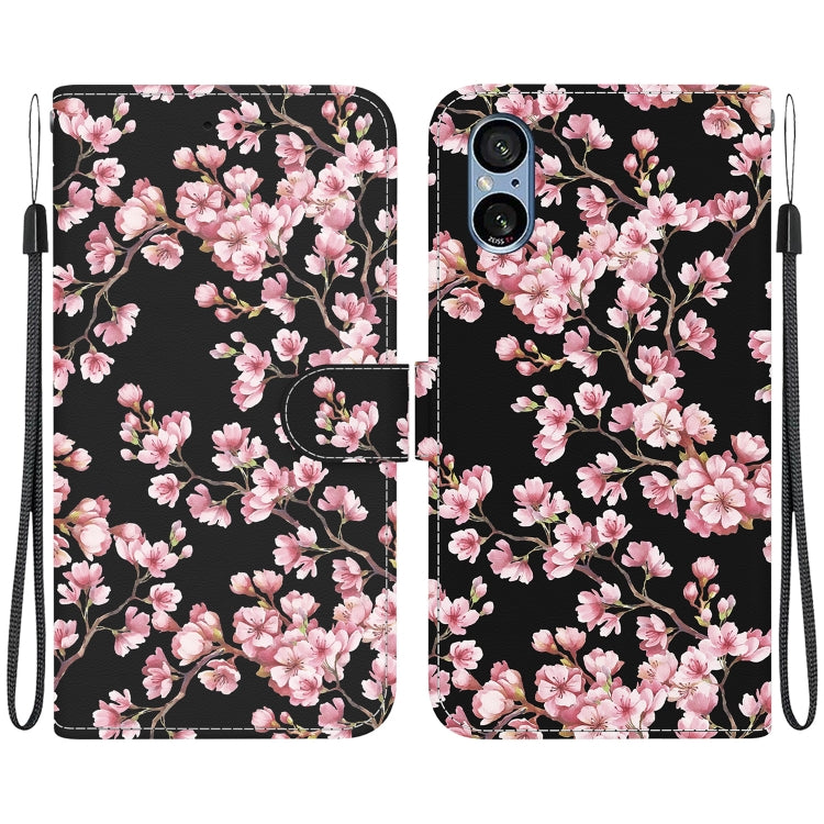 Funda de Cuero para Sony Xperia 5 V con Dibujo Coloreado y Textura de Cristal (Flor de Ciruelo)