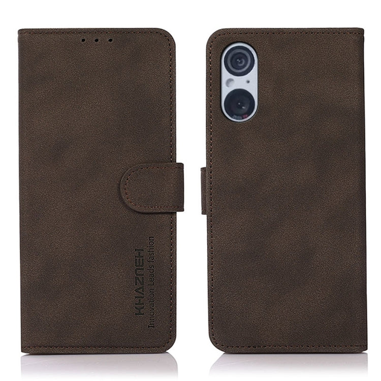 Funda de Cuero Khazneh para Sony Xperia 5 V con Textura Mate (Marrón)