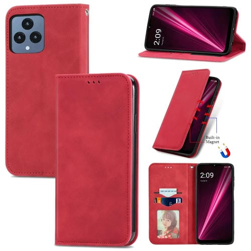 For T-Mobile Revvl 6 5G Retro Skin Feel Magnetic Leather Phone Case (Red)