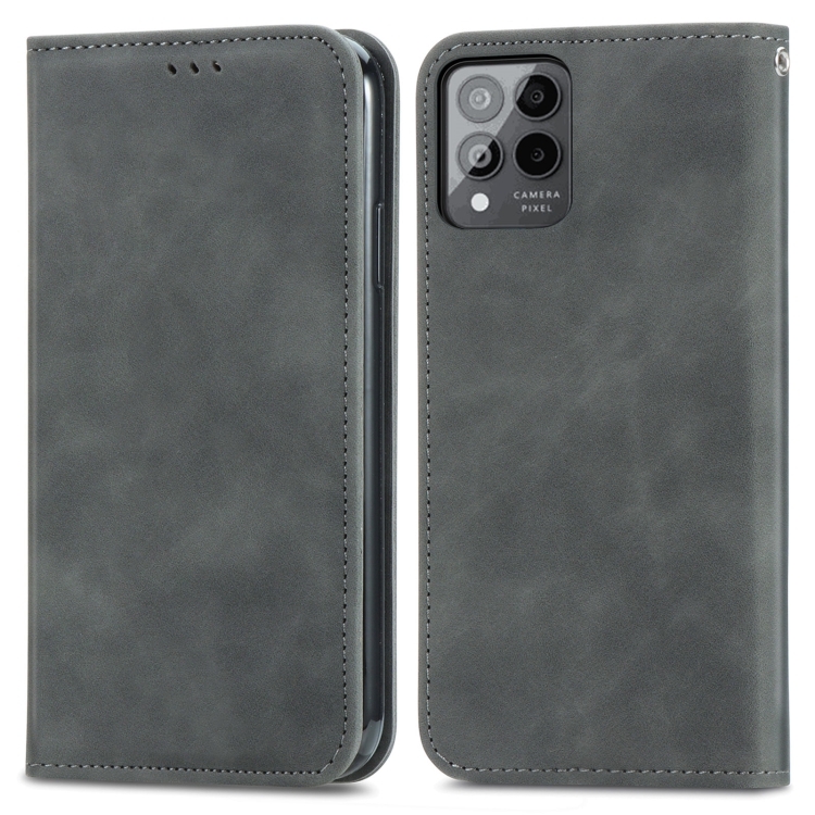 For T-Mobile Revvl 6 Pro 5G Retro Skin Feel Magnetic Leather Phone Case Cover (Gray)