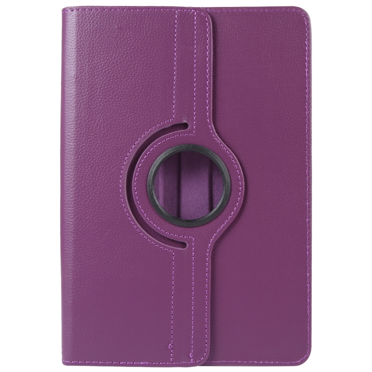 Funda de Cuero para Tablet 10 Pulgadas con Rotación 360° y Textura Litchi (Púrpura)