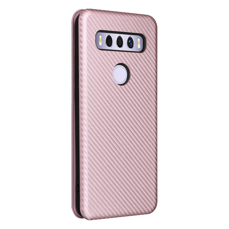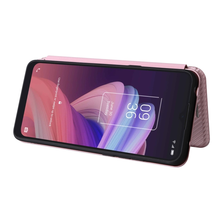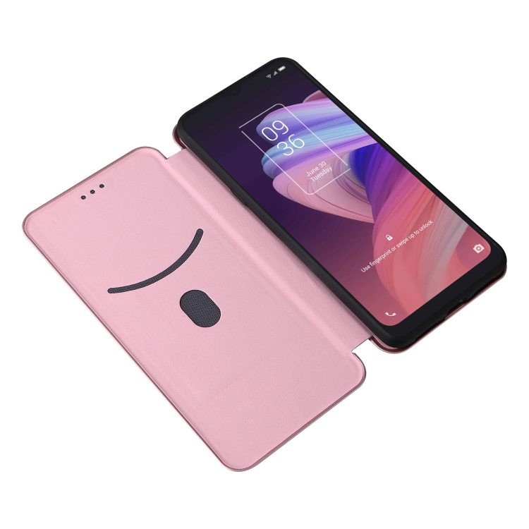 Funda para TCL 10 Se Fibra de Carbono Caja de Cuero Magnético con Ranura para Tarjeta (Rosa)