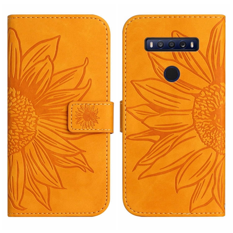 Funda Flip de Cuero para TCL 10 Se Skin Feel con Patrón Sun Flower y Cordón (Amarillo)