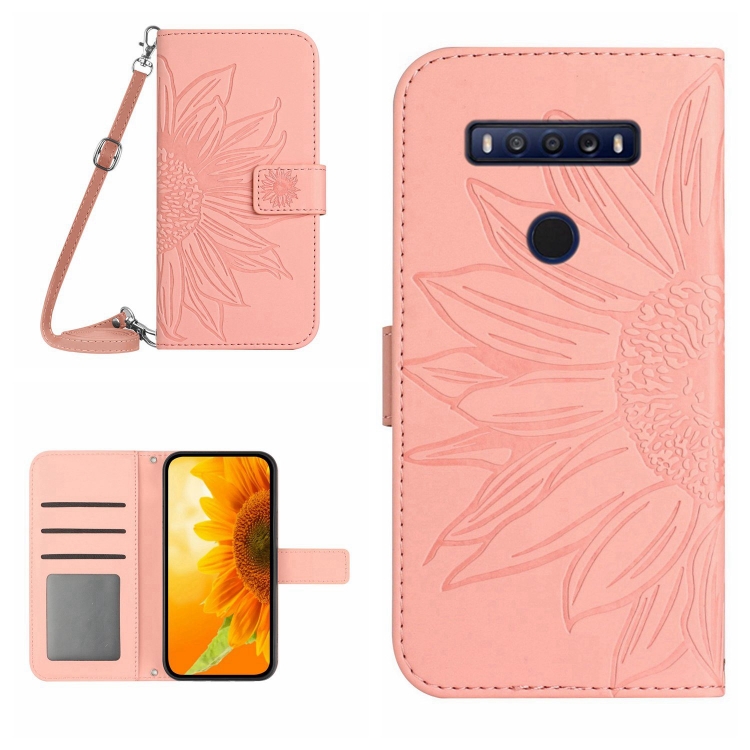 Funda Flip de Cuero para TCL 10 Se Skin Feel con Cordón y Estampado Sun Flower (Rosa)
