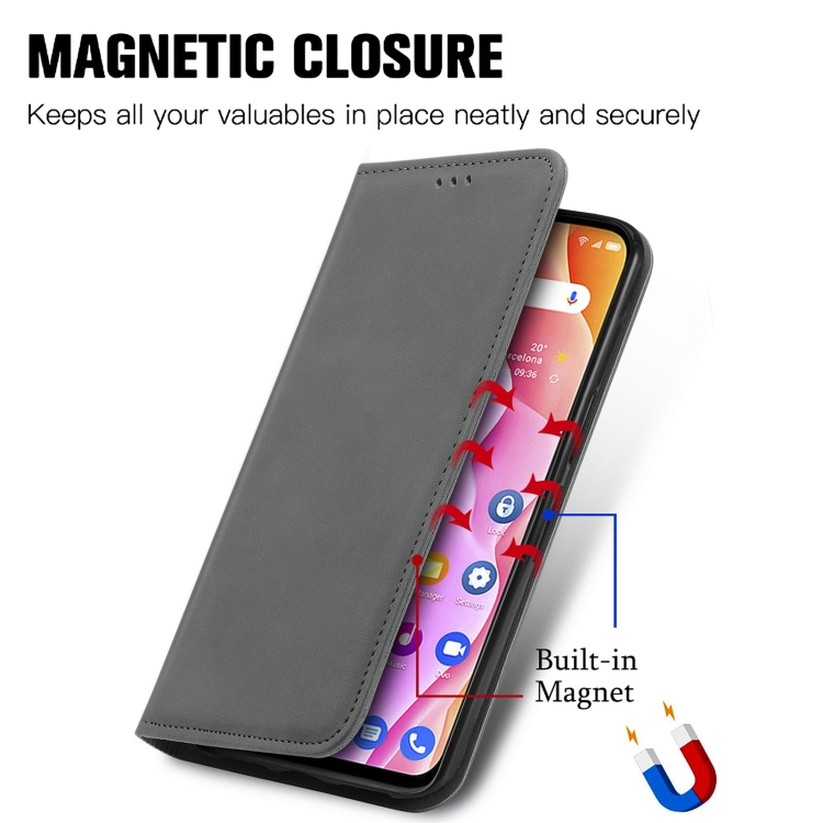Funda Flip Horizontal Magnética para TCL 10L Piel Retro (Gris)