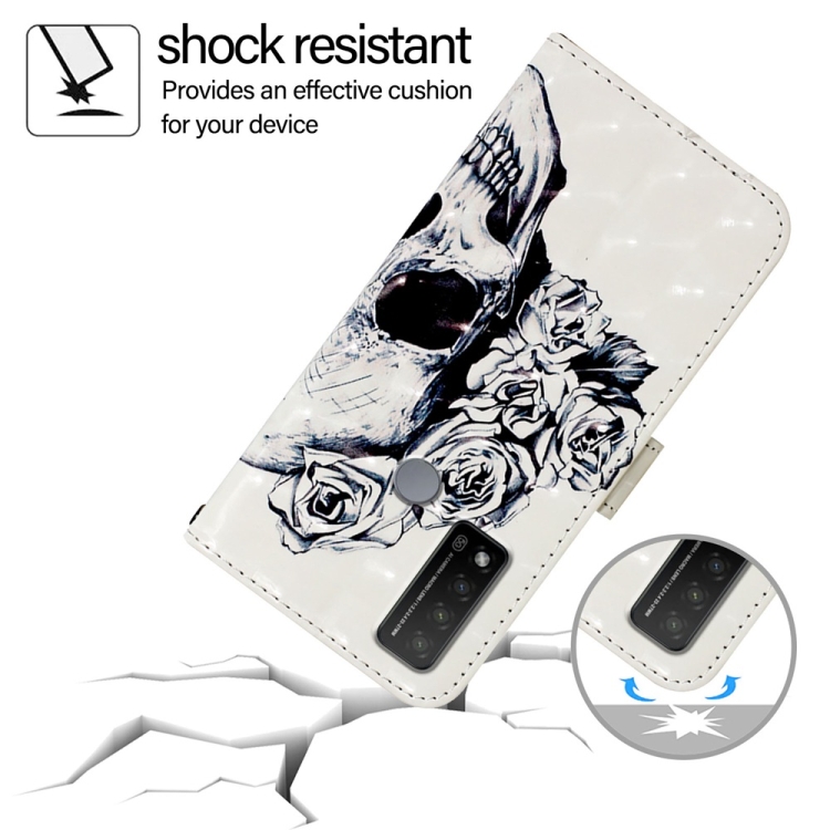 Funda de Cuero para TCL 20 R 5G con Tapa Horizontal y Pintura 3D (Calavera)