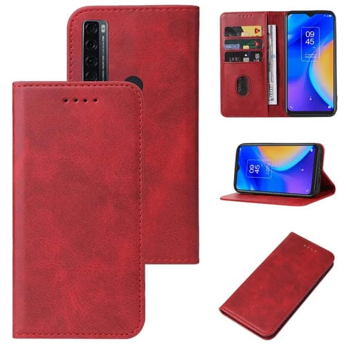 Funda de Cuero para TCL 20 Se con Cierre Magnético (Rojo)