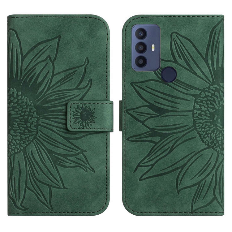 Funda Flip de Cuero para TCL 30 Se/30E/306/305 con Cordón y Diseño Sun Flower (Verde)
