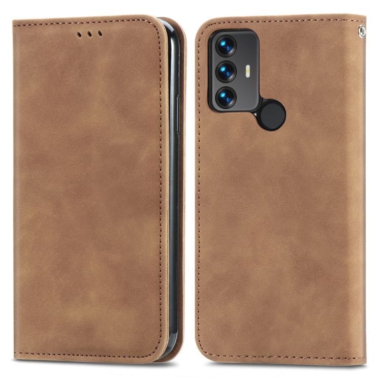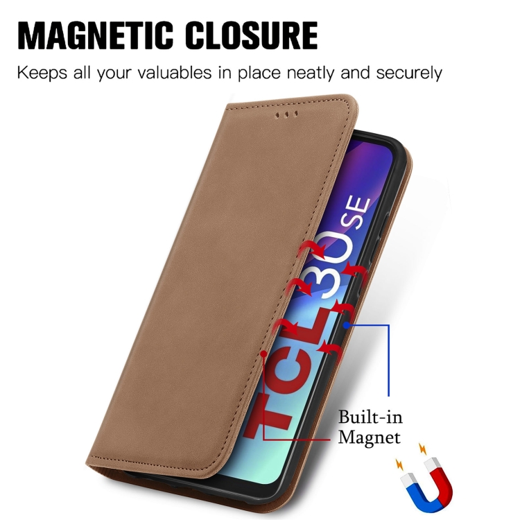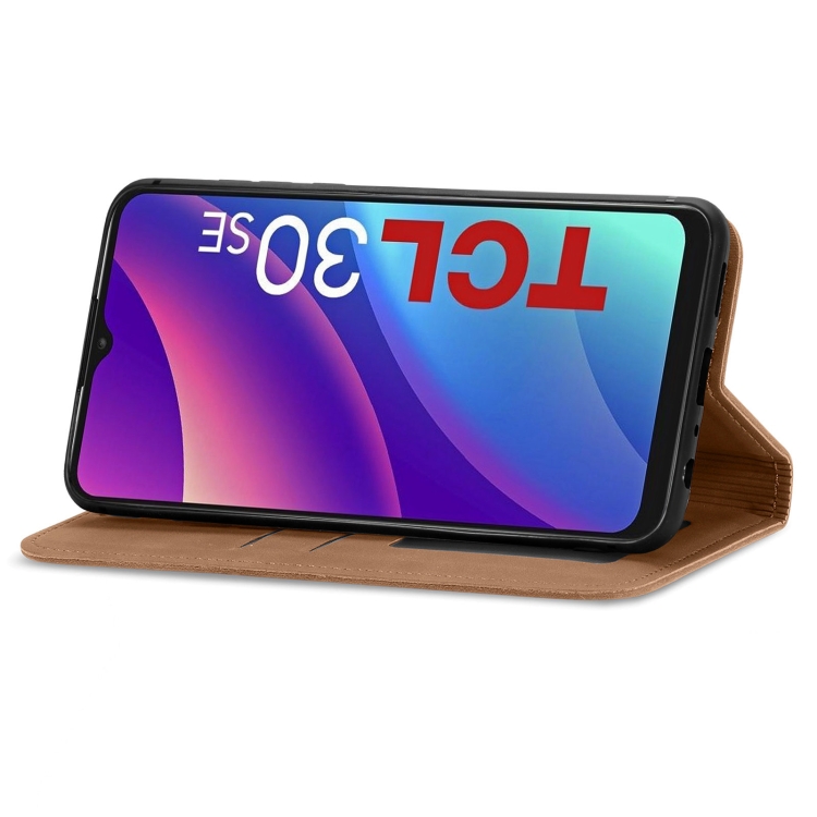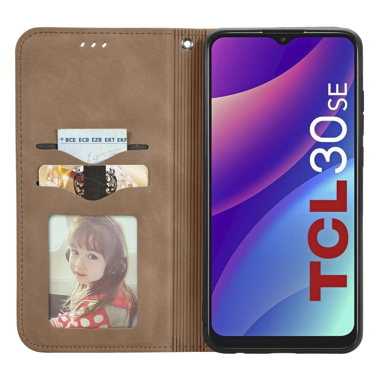 Funda Flip Horizontal de Cuero para TCL 30 Se Retro Siente con Cierre Magnético (Marrón)
