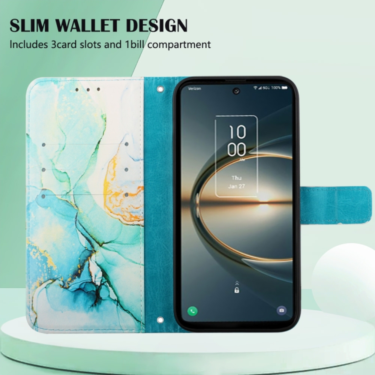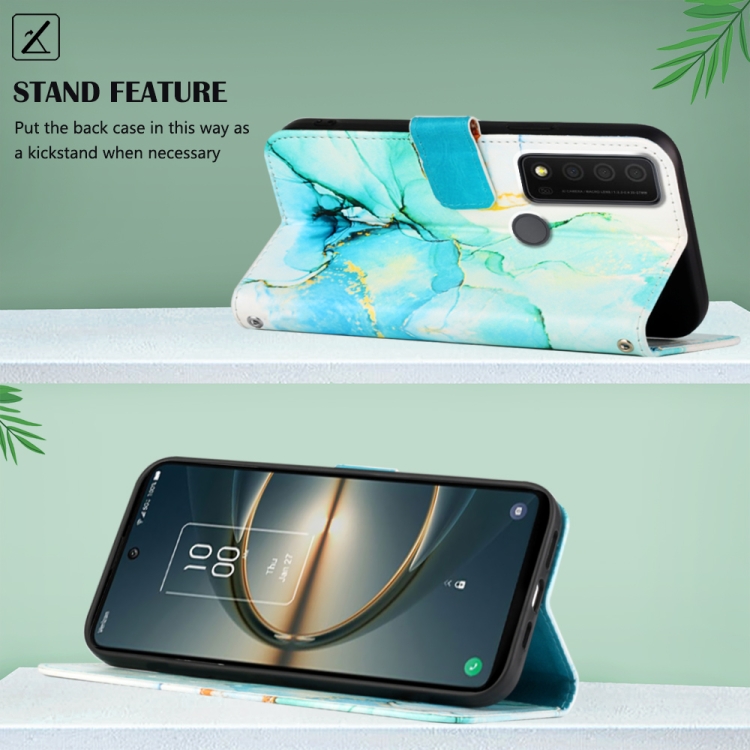 Funda de Teléfono TCL 30 V 5G T781S/30 Xe 5G Pt003 con Tapa de Cuero y Patrón de Mármol (Verde)