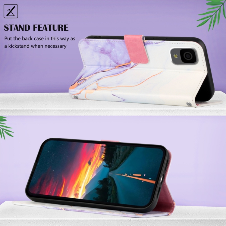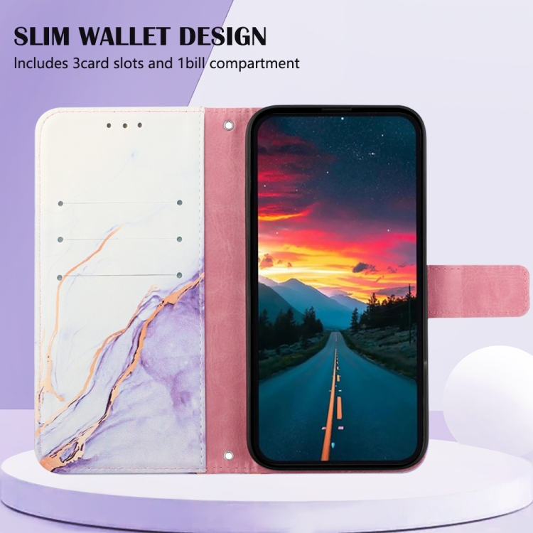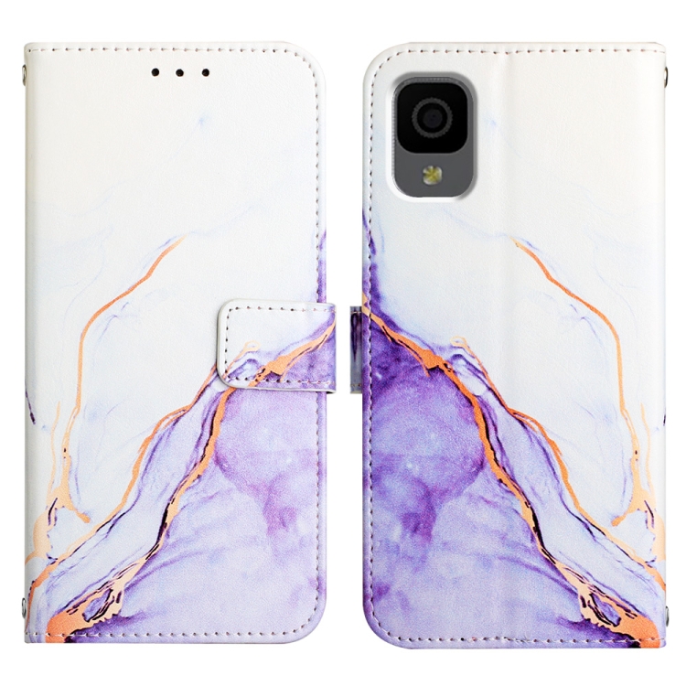 Funda de Teléfono TCL 30Z T602Dl Pt003 con Tapa de Cuero y Patrón de Mármol (Blanco Púrpura)