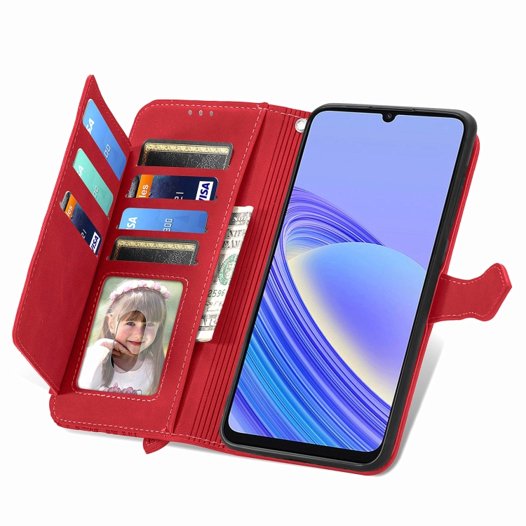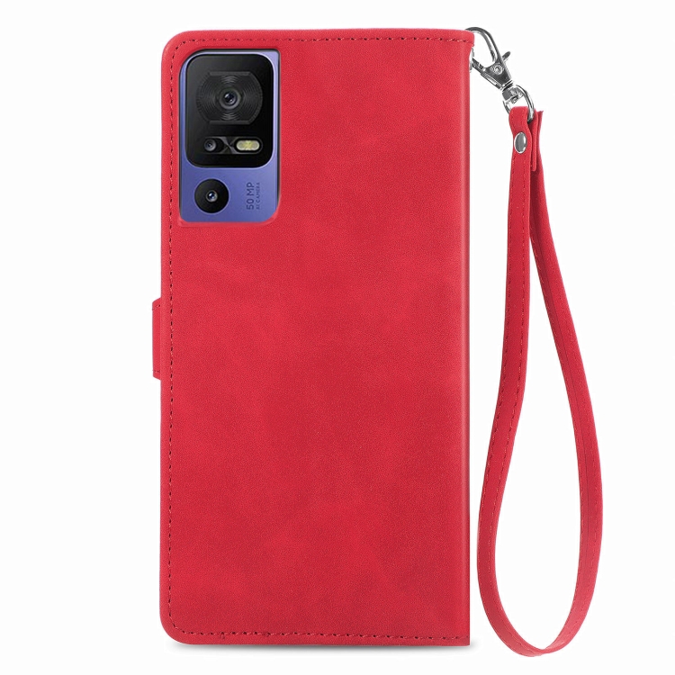 Estuche para TCL 40 SE de Cuero con Cremallera y Flores en Relieve (Rojo)