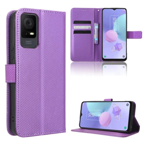 Funda de Cuero para TCL 405 / 406 T506D con Textura de Diamante (Púrpura)
