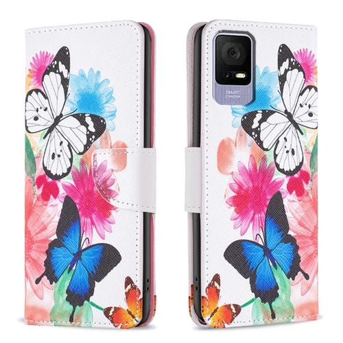 Funda de Cuero para TCL 405 con Patrón de Mariposas y Colores