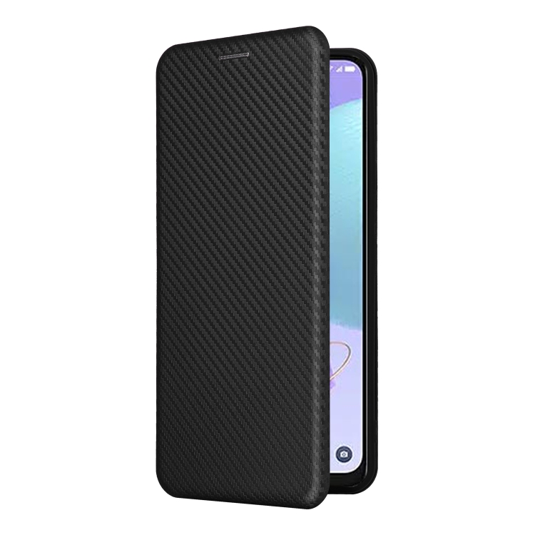 Funda de Teléfono TCL 408 con Tapa de Cuero y Textura de Fibra de Carbono (Negro)