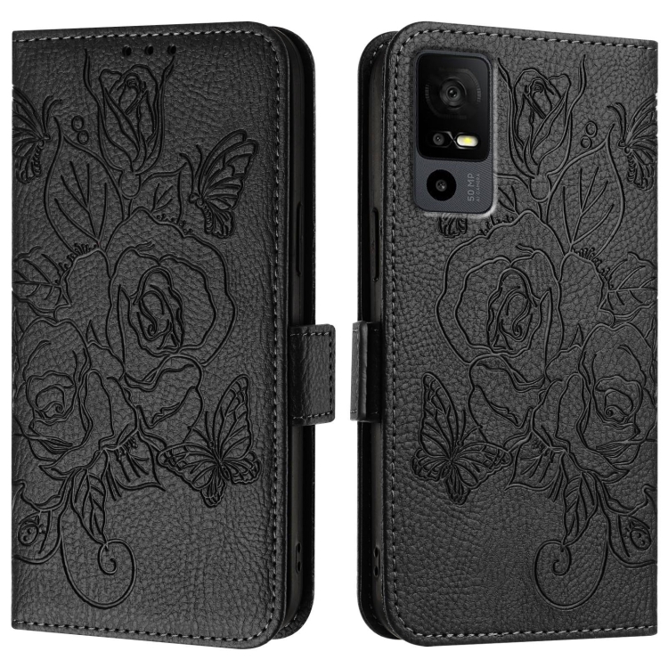 Funda de Cuero Antirrobo RFID para TCL 40R con Relieve (Negro)