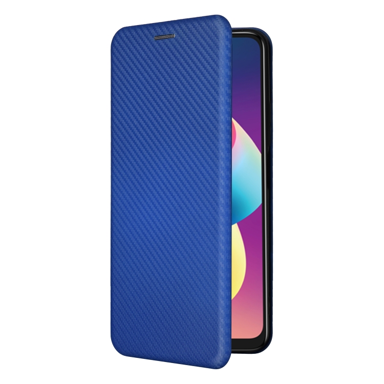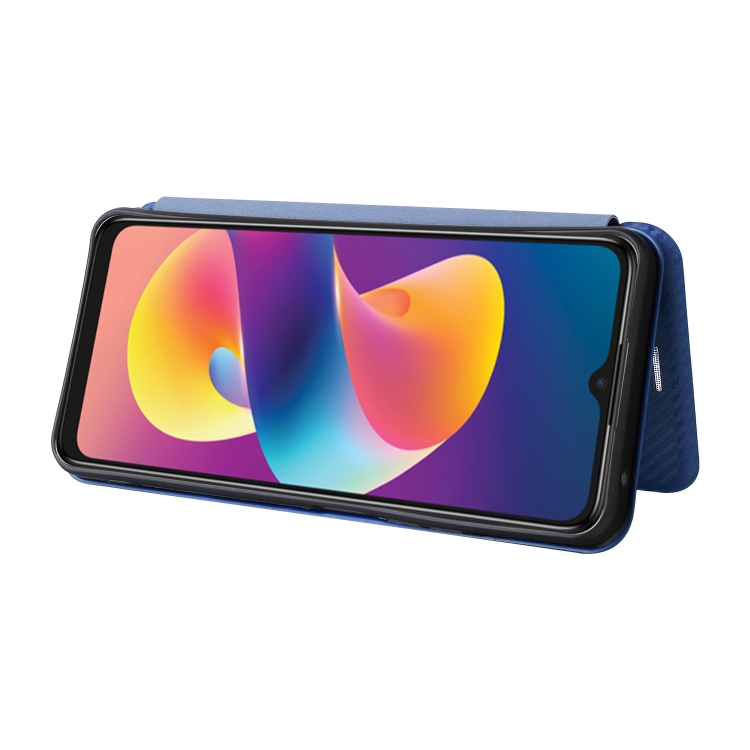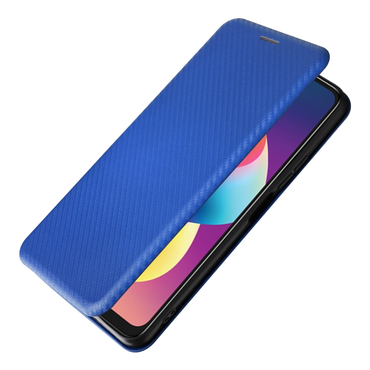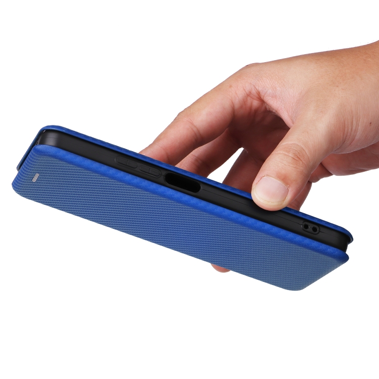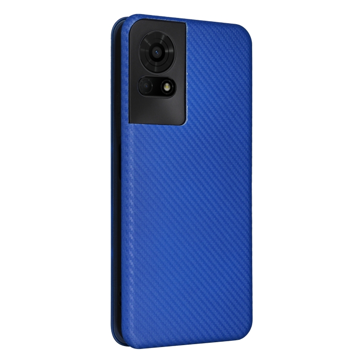 Funda de Cuero con Tapa para TCL 50 Le 5G con Textura de Fibra de Carbono (Azul)