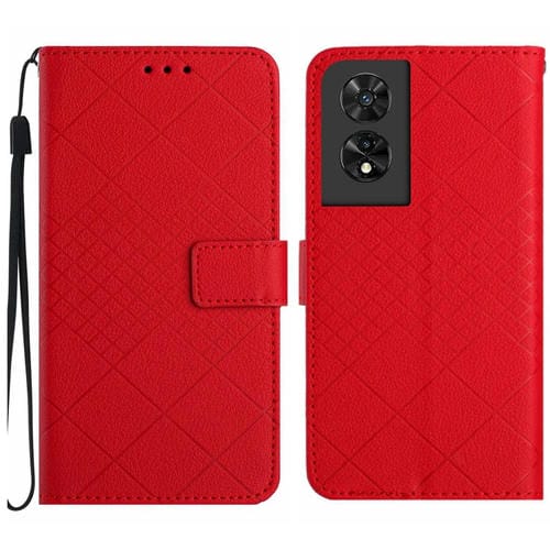 Funda de Cuero para TCL 50 Se / 40 Nxtpaper 4G con Textura de Rejilla Rómbica (Rojo)