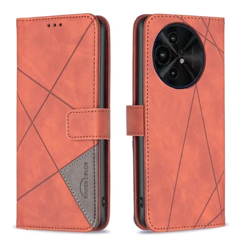 Funda de Cuero para TCL 50 Xe / 50 Xl 5G con Textura de Rombo y Hebilla Magnética (Marrón)