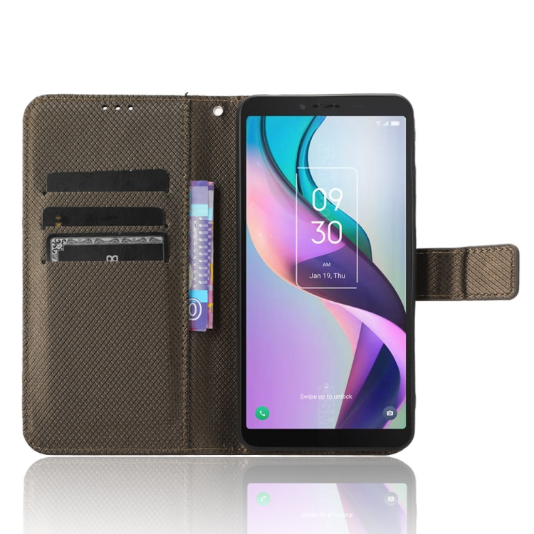 Funda de Teléfono para TCL Ion X Cuero Textura de Diamante (Marrón)