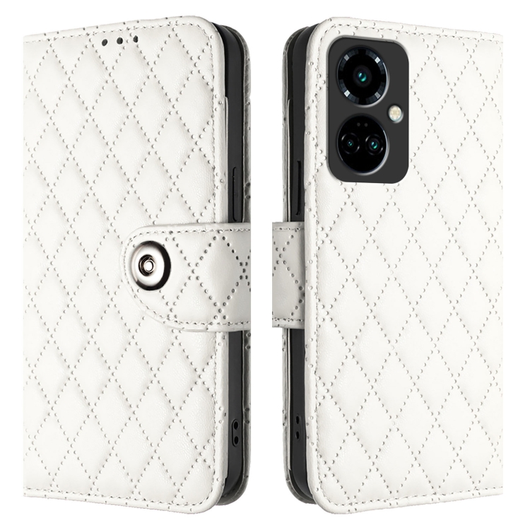 Funda de Cuero para Tecno Camon 19 Pro 5G con Tapa y Textura Romboidal con Cordón (Blanco)