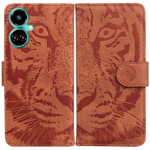 Funda de Cuero con Tapa Horizontal para Tecno Camon 19 Tiger Embossing Pattern (Marrón)