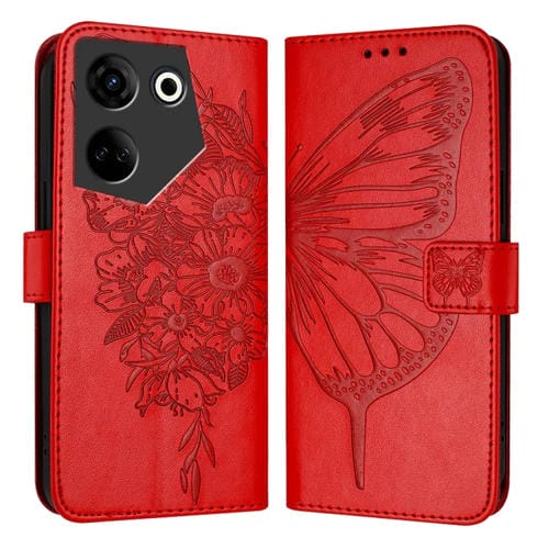 Funda de Cuero para Tecno Camon 20/20 Pro 4G con Mariposa en Relieve (Rojo)