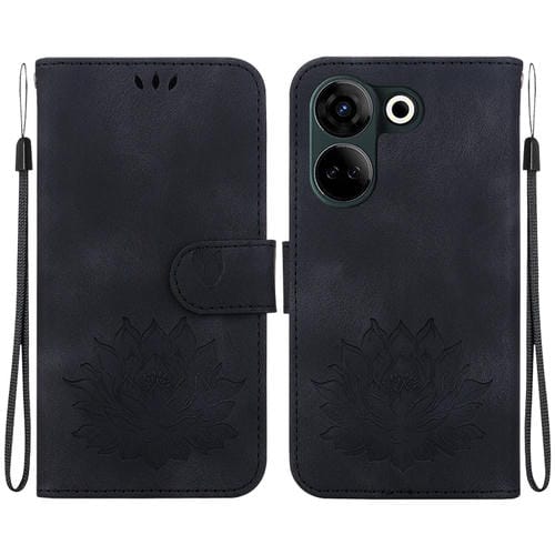 Funda de Cuero para Tecno Camon 20 y Camon 20 Pro 4G con Relieve de Loto (Negro)