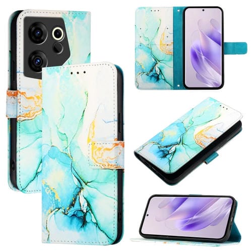 Funda de Cuero para Tecno Camon 20 Premier 5G Ck9N Pt003 con Tapa y Patrón de Mármol (Verde)